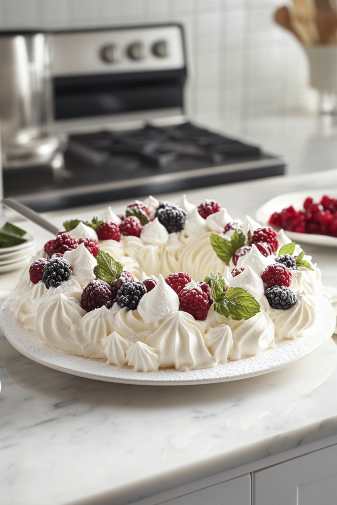 Light, crisp, and airy, the Christmas Pavlova Wreath is a feast for the eyes and the palate. This meringue-based dessert, with its marshmallow-soft center and delicate crunch, is shaped into a festive wreath and adorned with fresh berries, pomegranate seeds, and mint leaves. A drizzle of honey or passion fruit adds a tropical twist to the traditional pavlova. Its origins may be Australian, but this dessert has found its way to holiday tables worldwide—and for good reason.