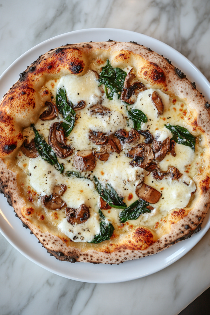 Pizza for Valentine’s lunch? Absolutely—especially when it’s topped with a dreamy combination of sautéed mushrooms, wilted spinach, and plenty of melty mozzarella.