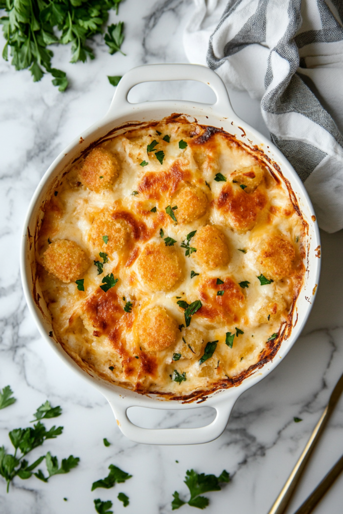 Perfect for a casual Valentine’s lunch, this dish is pure comfort with a playful twist. It’s the kind of meal that makes you grab an extra fork and dig in together, because who can resist those golden, crunchy tots?