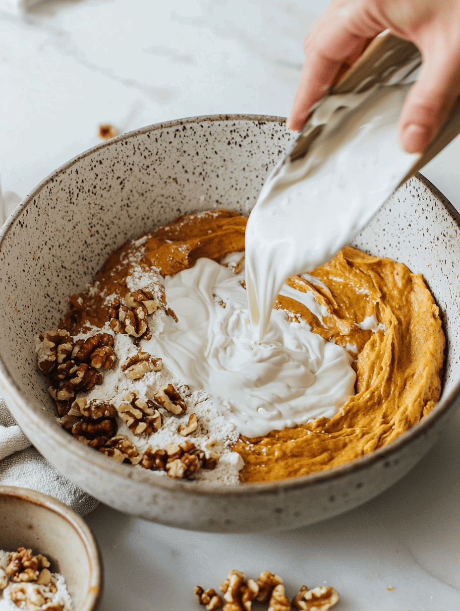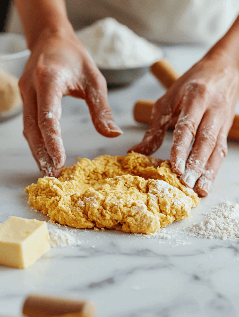 - Stir in the pumpkin puree until just combined. The dough will be slightly sticky but should hold together.