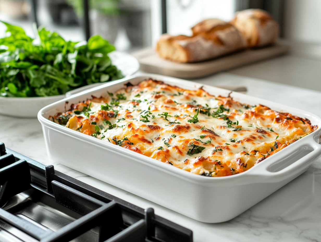 - Preheat your oven to 350°F and spray a 2-quart rectangular baking dish with non-stick cooking spray.