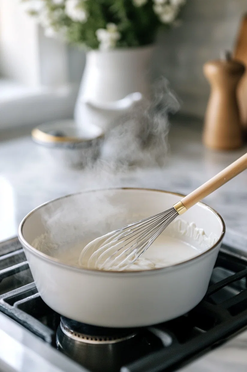 - Gently heat the mixture over simmering water, whisking until thickened.