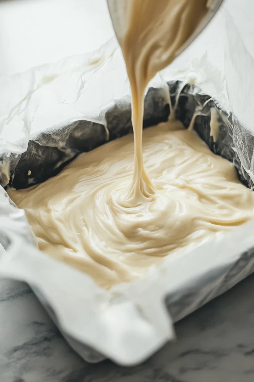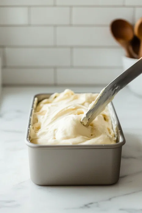 - Pour mixture into the loaf pan.