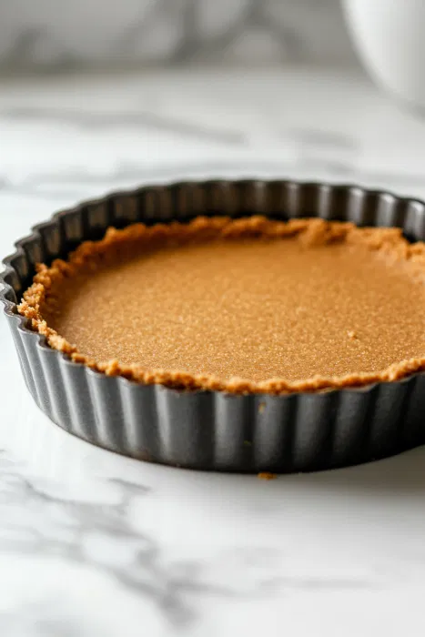 - Press and BakePress the mixture into a tart pan and bake at 350°F until lightly golden.