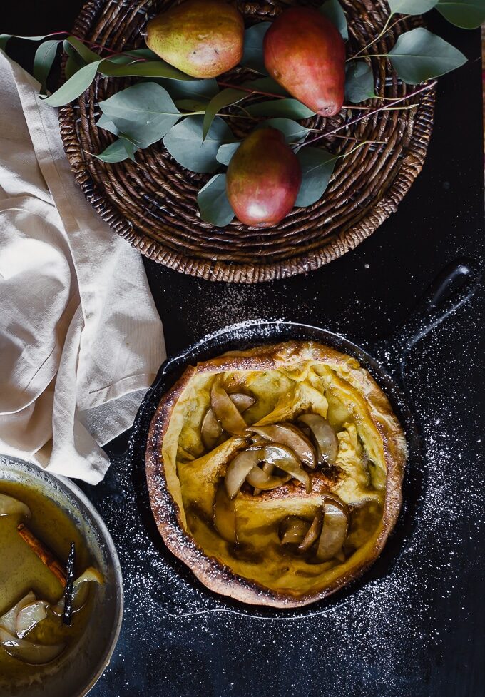 Pears Foster Dutch Baby Pancakes Recipe