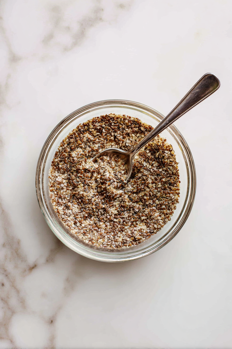 - Make flax eggs: In a small bowl, mix ground flaxseeds and water, then set aside to thicken.