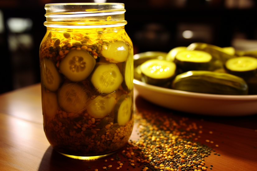 Exercise caution as you pour the hot brine over the vegetables in the jar, sealing it tightly. Pop it into the refrigerator for a leisurely 24-hour wait before indulging in these homemade sweet pickles.