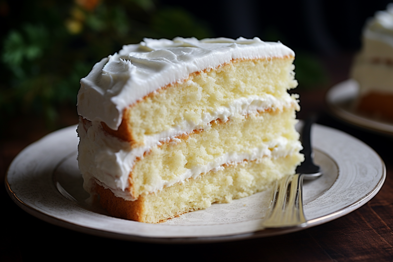 The recipe typically includes flour, baking powder, sugar, butter or shortening, milk, and vanilla extract. The cake is versatile, often paired with various frostings for celebrations like weddings and birthdays.