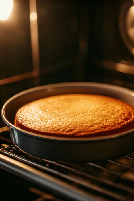 Bake the sponge for 25–30 minutes until the top is golden and a toothpick comes out clean.