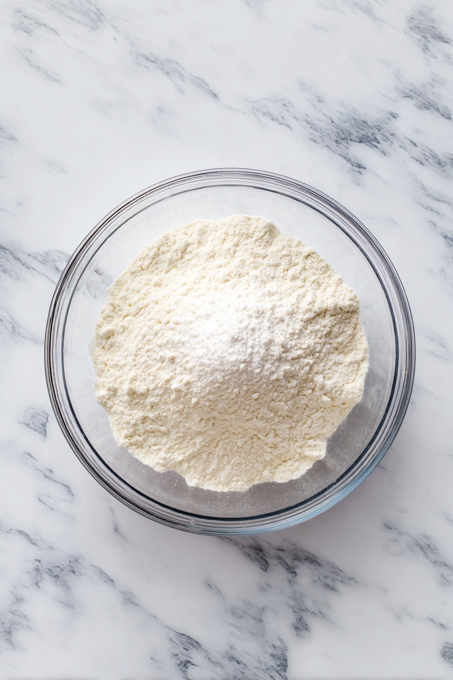 • In a mixing bowl, whisk together the flour, sugar, baking powder, and baking soda.