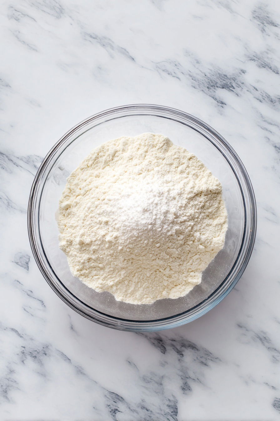 In a mixing bowl, whisk together the flour, sugar, baking powder, and baking soda.