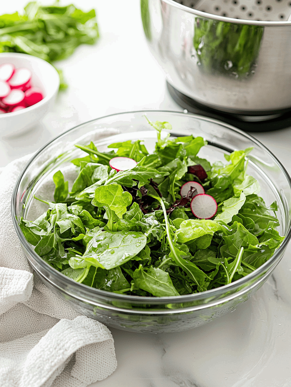 - Wash and dry the mixed greens, then layer them onto a serving plate or bowl as the base of the salad.