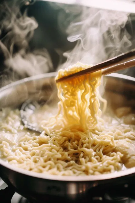 - Step 5: Cook the NoodlesDrop the ramen noodles straight into the creamy broth. Let them soften for 2–3 minutes, stirring occasionally so they soak up the flavor instead of just sitting in it.