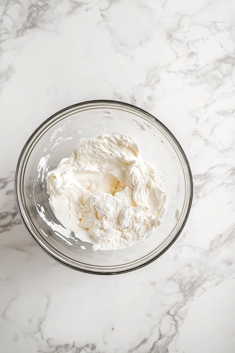 • Whip the Cream: Beat heavy cream with powdered sugar until soft peaks form. Refrigerate.