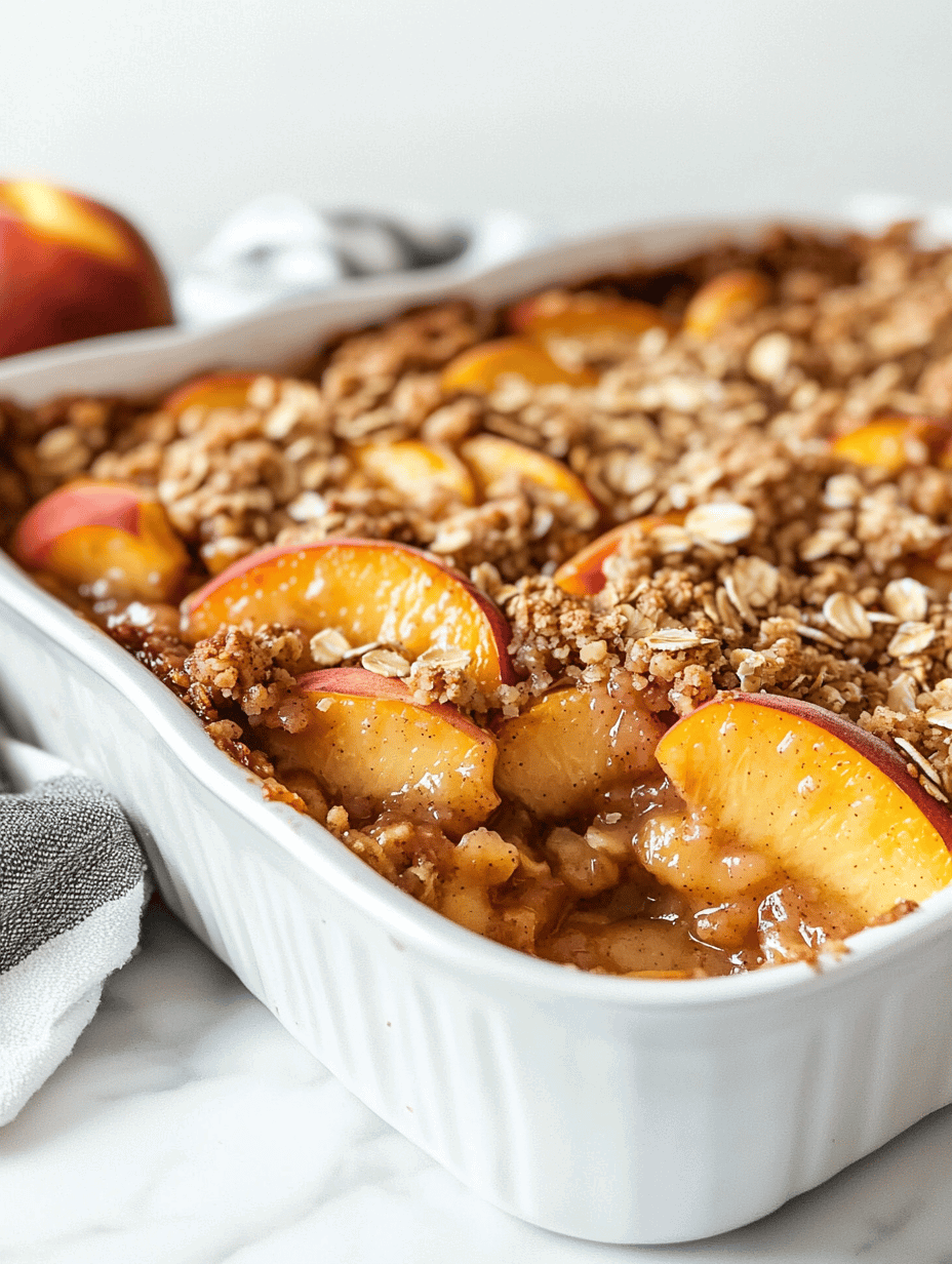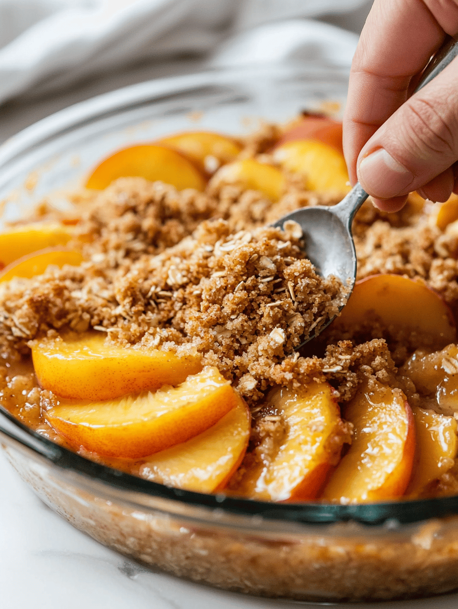 But what really sets this peach crisp apart is how versatile it feels. You can doll it up with a splash of bourbon or keep it simple, letting the natural fruit shine. Its warm, fragrant scent fills the kitchen, making everyone eagerly watch the oven windows for that perfect bubbling edge. It’s a cozy, imperfectly perfect creation that makes you appreciate ripe peaches and a little bit of crumble magic.