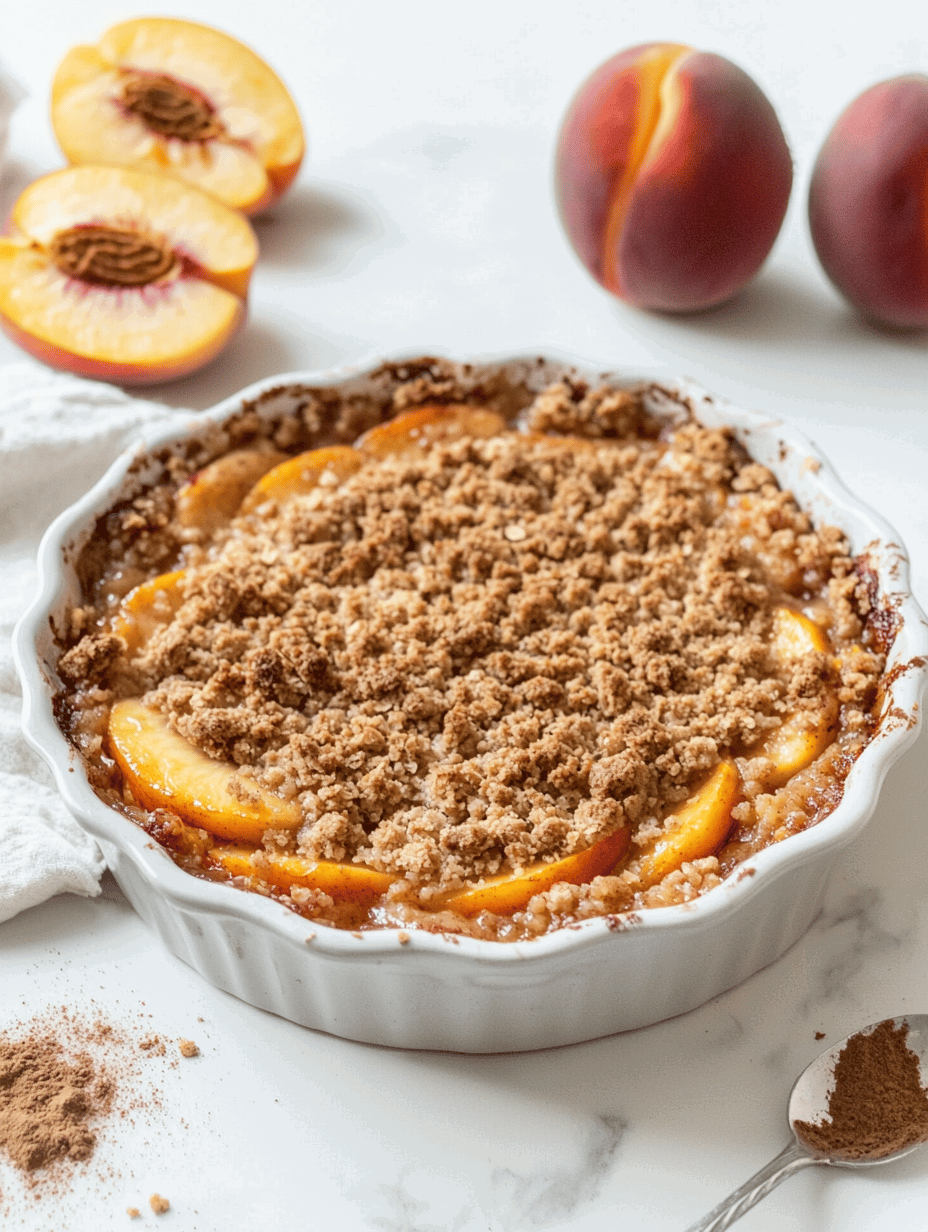 Sharing this peach crisp feels like a small act of gratitude for summer’s bounty. Its balance of sweet and tart flavors, combined with that irresistible crunch, makes each serving a little celebration. A dessert that feels both rustic and refined, it’s perfect for when peaches are at their peak.