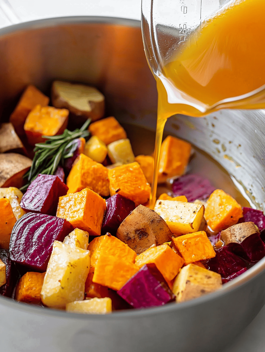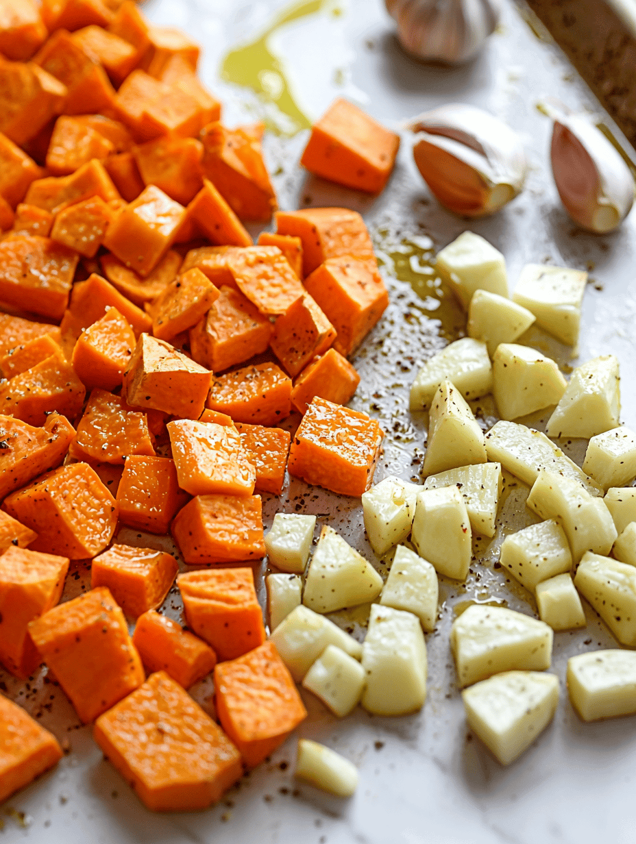 - Preheat your oven to 400°F (200°C). Spread peeled and chopped root vegetables and whole garlic cloves on a baking sheet. Drizzle with olive oil, toss to coat, and roast in the oven for about 30-40 minutes until tender and caramelized, filling your kitchen with a warm, earthy aroma.
