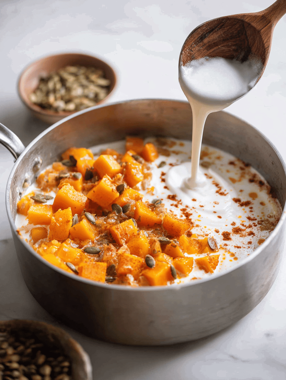 • Cream or coconut milk: Adds creaminess. Coconut offers a subtle sweetness and tropical aroma.