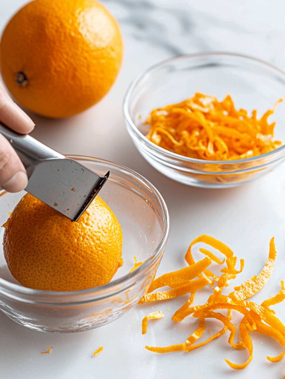 - Begin by zesting the orange carefully with a vegetable peeler, then peel off strips of the orange peel, avoiding the white pith.