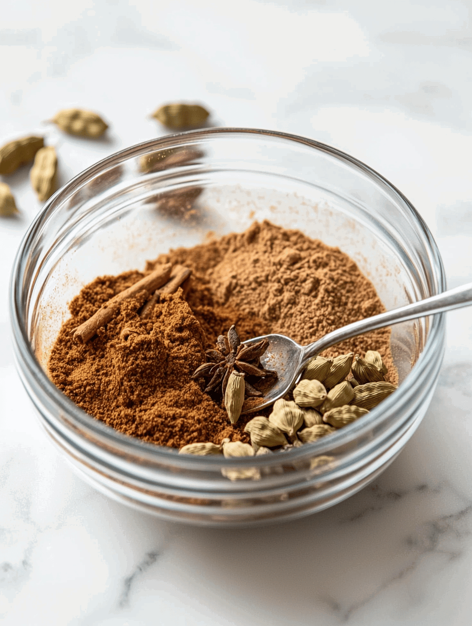 - Combine all the spices—cinnamon, cardamom, cloves, and coriander—in a small mixing bowl.