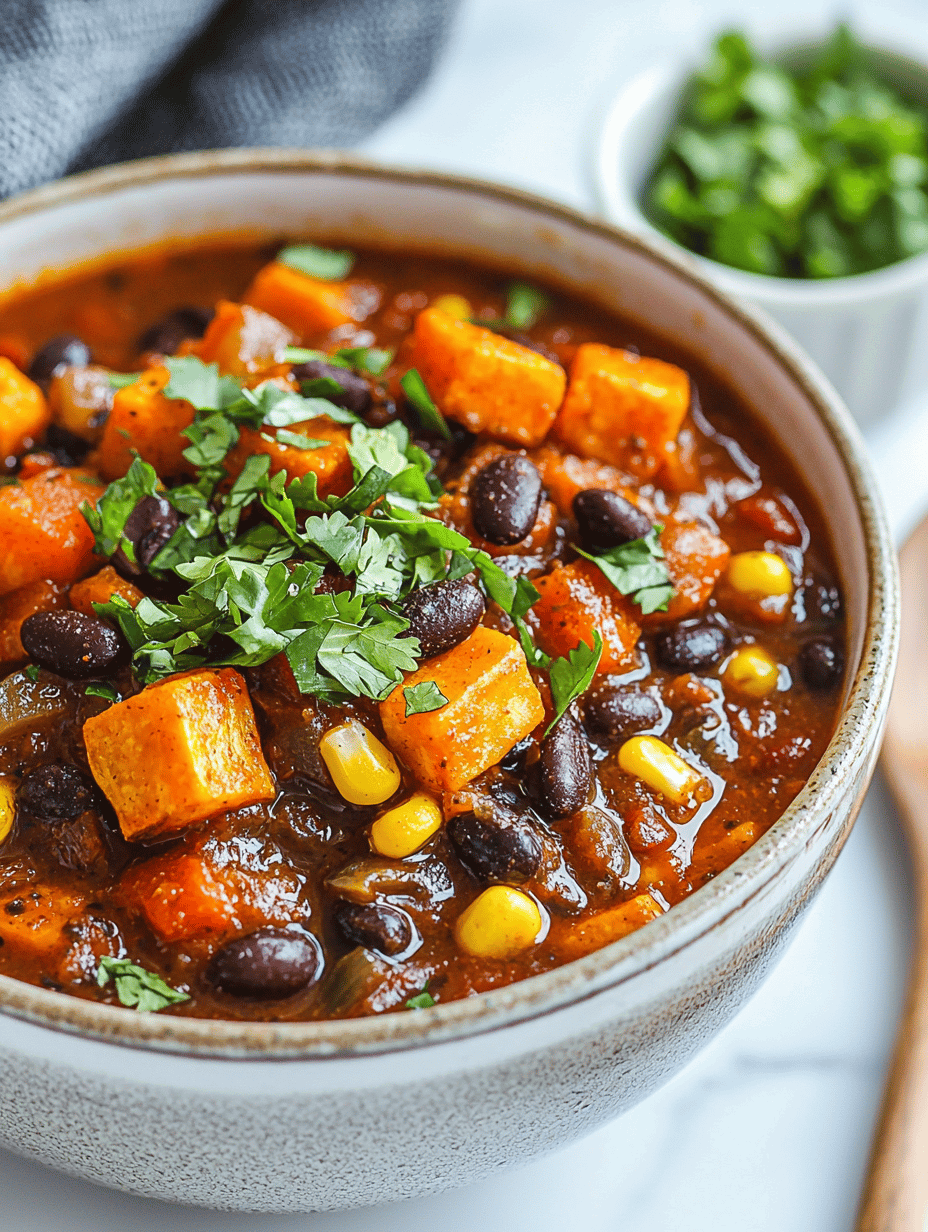 - Serve the chili hot, garnished with fresh herbs or a drizzle of olive oil if desired. The final dish is thick, hearty, with tender sweet potatoes and a robust flavor layered with smoky spices.