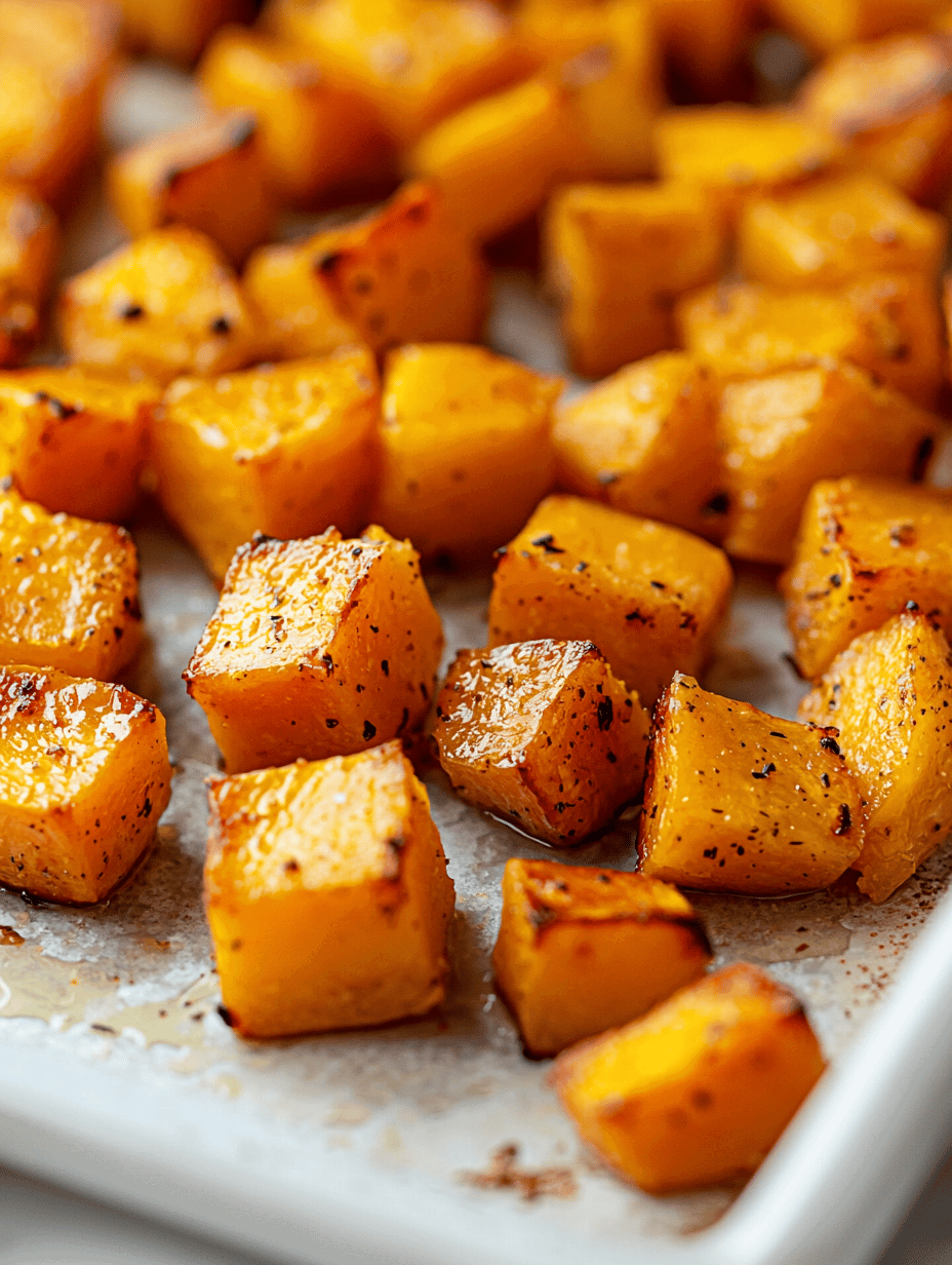 • Preheat your oven to 400°F (200°C). Spread the cubed butternut squash on a baking sheet, drizzle with a little olive oil, and season with salt. Roast for about 20-25 minutes until tender and lightly caramelized.
