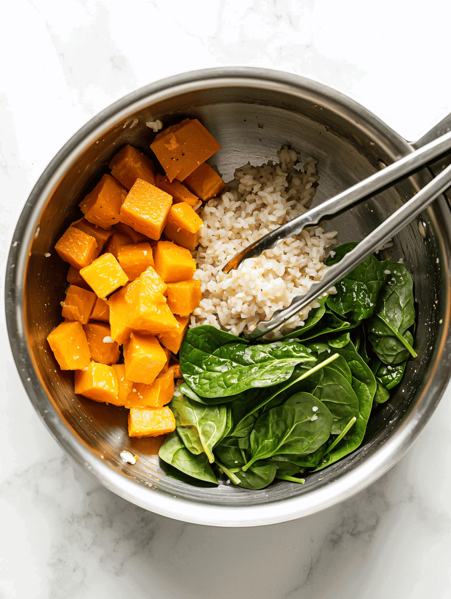 Some nights, it’s the little dishes like this that turn a regular meal into a moment worth remembering. The combination of creamy rice, sweet squash, and tender spinach feels like autumn served on a plate—both grounding and inspiring.