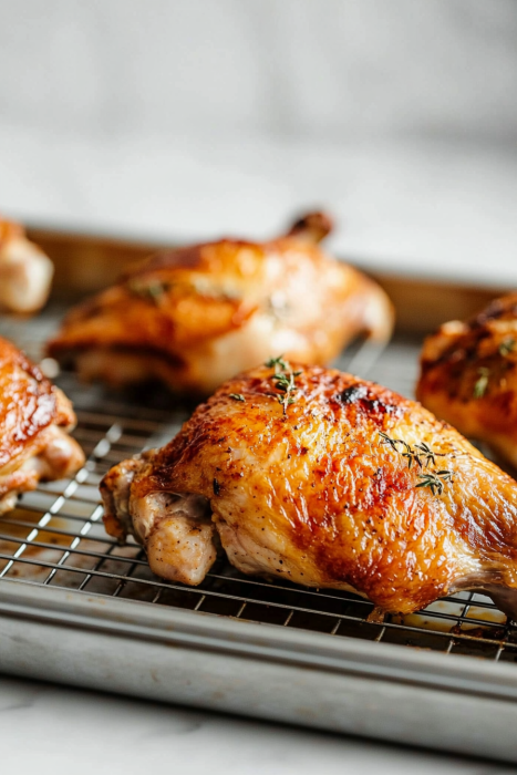 - Bake Until GoldenBake the chicken for 30–40 minutes, flipping halfway through, until the outside is golden and the internal temp hits 165°F.