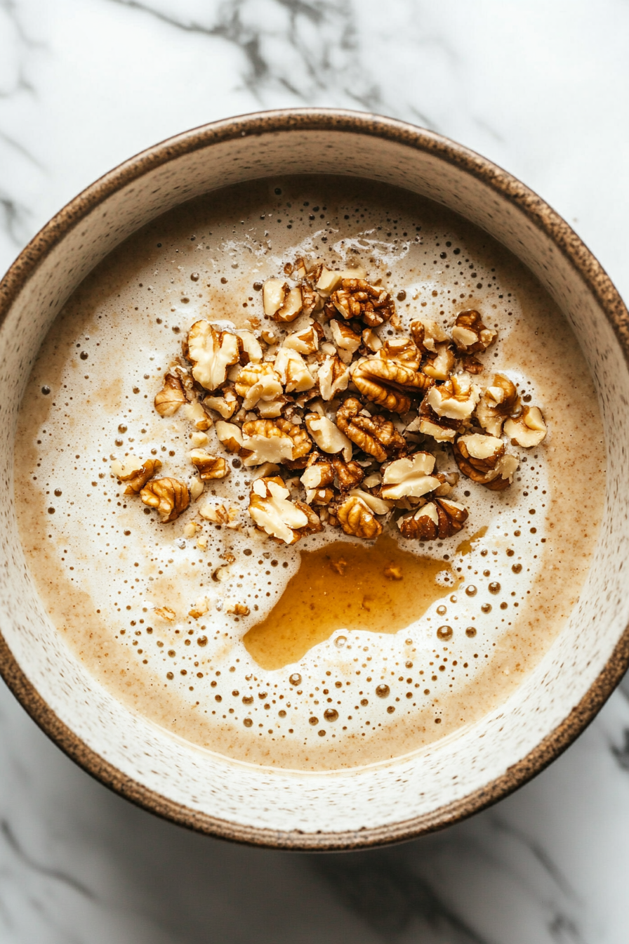 • Add in 1/2 teaspoon of vanilla extract, and throw in those chopped walnuts and some raisins if you fancy them.