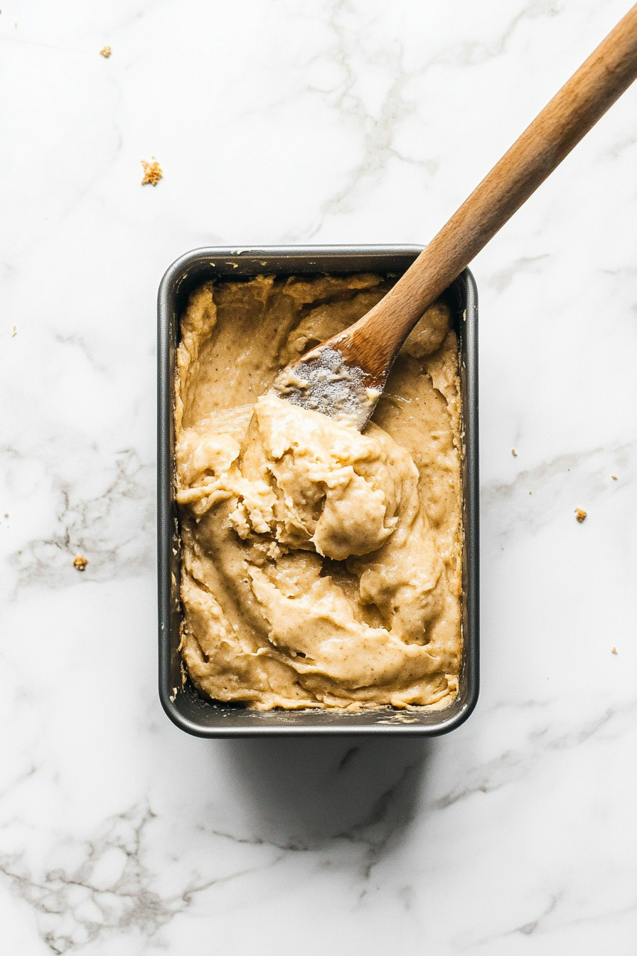 • Pour the batter into your prepared loaf pan.