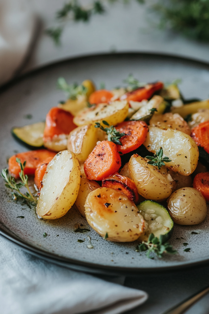 A colorful trio of roasted potatoes, carrots, and zucchini makes the perfect side dish for any holiday meal. The potatoes come out crisp and golden on the outside, soft and fluffy on the inside, while the carrots and zucchini add a touch of sweetness and vibrant color. Tossed with olive oil, garlic, and fresh herbs, each vegetable is seasoned to perfection and roasted to bring out its natural flavors. This side dish is both easy and impressive, and it pairs wonderfully with just about any main course. Click to get the full recipe!