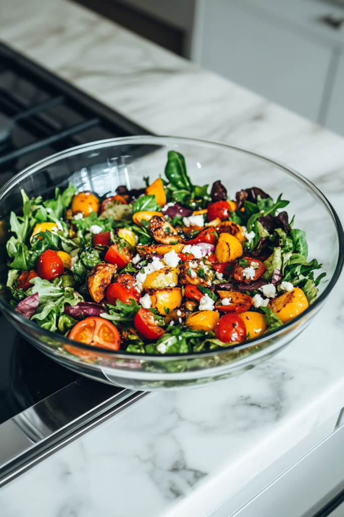 This Raw and Roasted Dinner Salad is a winter wonderland on a plate. With a mix of crisp greens and roasted seasonal veggies like Brussels sprouts and sweet potatoes, it’s the perfect balance of fresh and warm. The dressing is light but full of flavor, with a tangy mustard vinaigrette that complements the roasted flavors beautifully. A handful of crunchy nuts or seeds adds that final bit of texture, making this salad a hearty, satisfying dish for any holiday gathering. Want to make this colorful, nutrient-packed salad? Click for the full recipe!