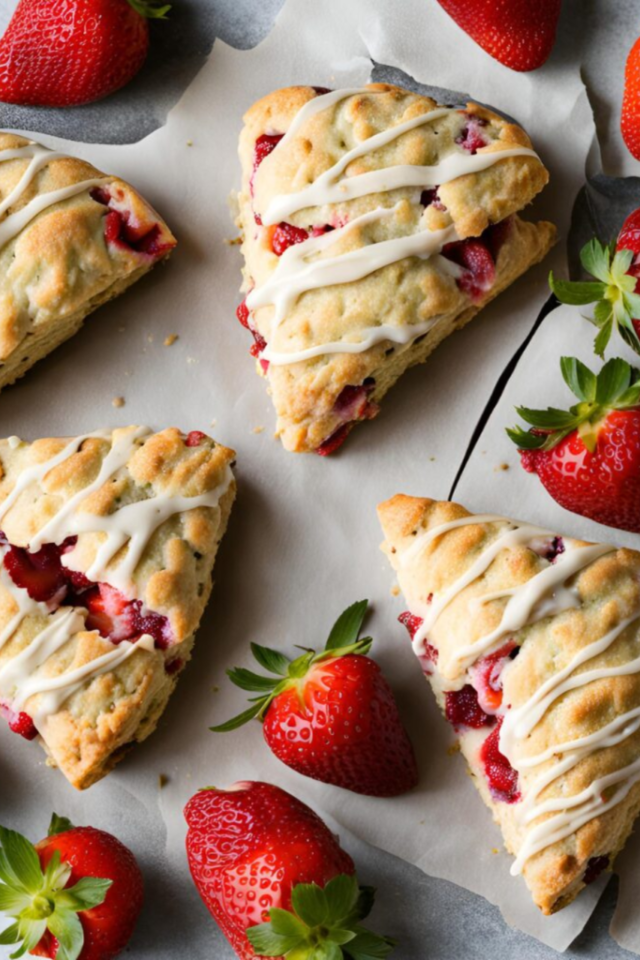Warm, buttery scones dotted with fresh strawberries are the ultimate comfort food, ideal for any breakfast or afternoon tea. These scones are light and flaky, with bursts of sweet berries in every bite.
