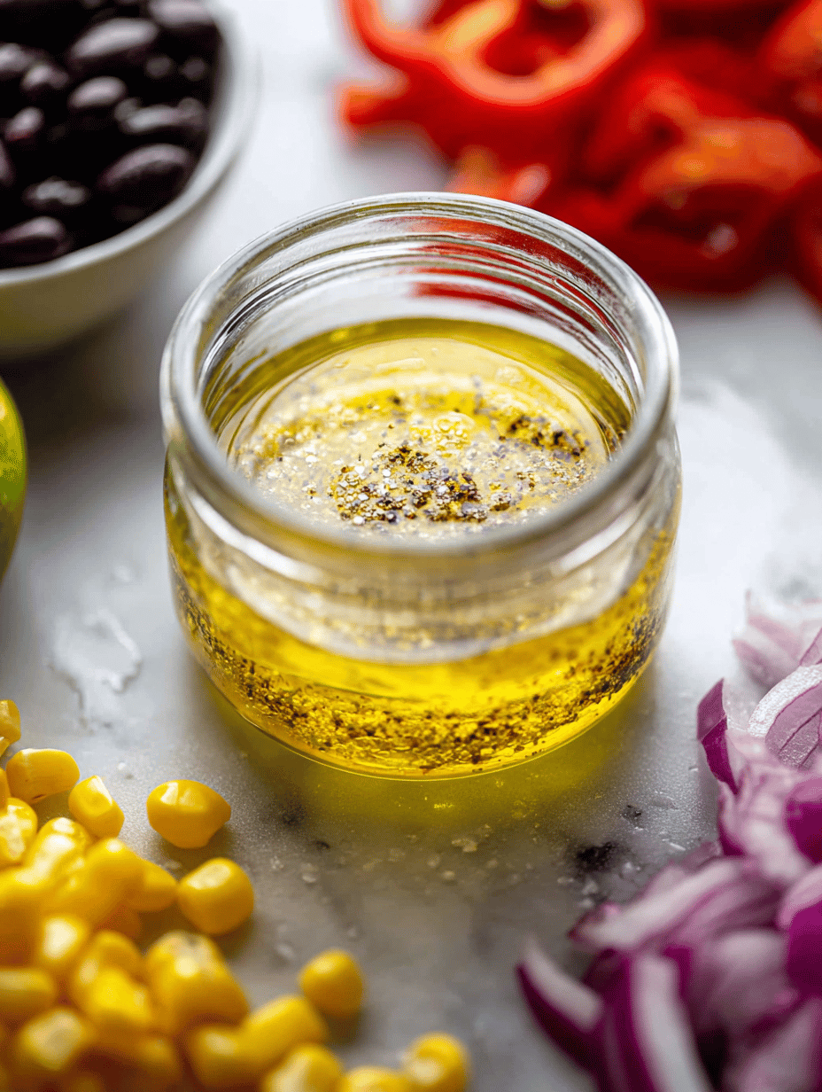 Step 4: In a small jar, shake together olive oil, lime juice, a pinch of cumin, salt, and pepper for the dressing.