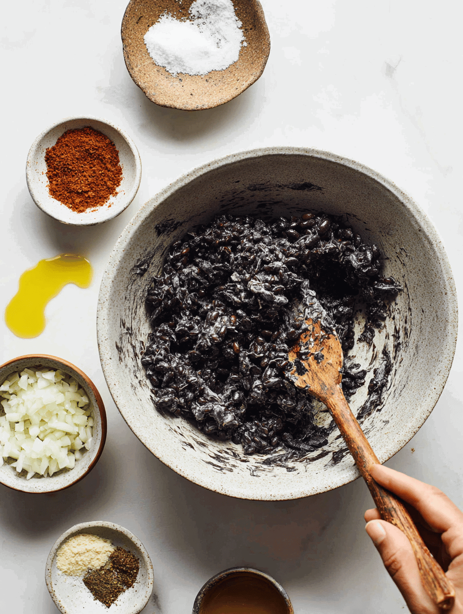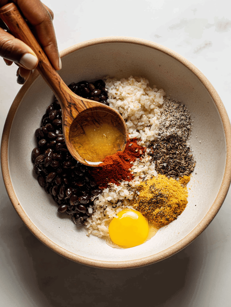 Step 3: In a bowl, combine the mashed beans with finely chopped onion, garlic, and a handful of oats or breadcrumbs to help bind.