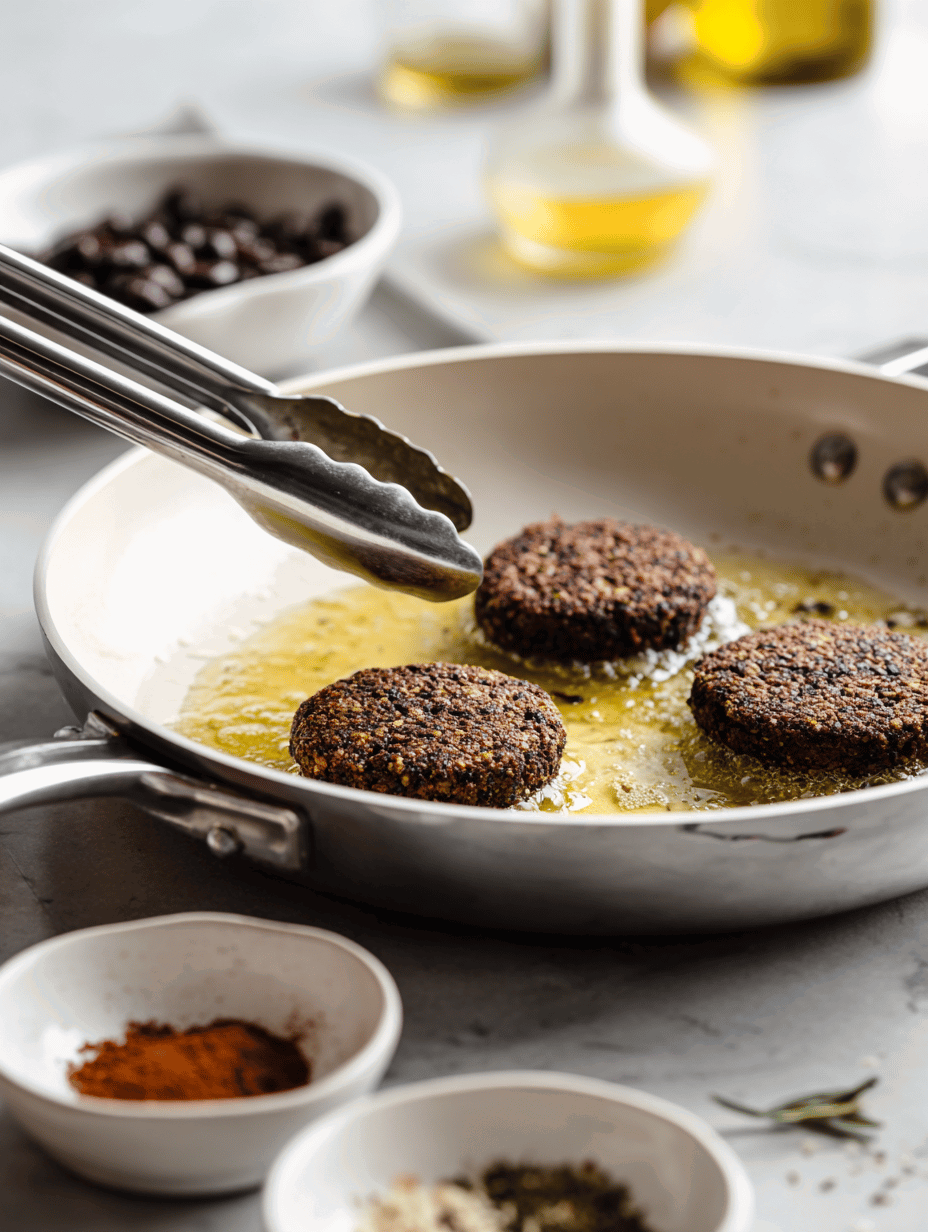 Step 7: Cook the patties for 4-5 minutes per side until they’re golden brown and crispy on the edges.