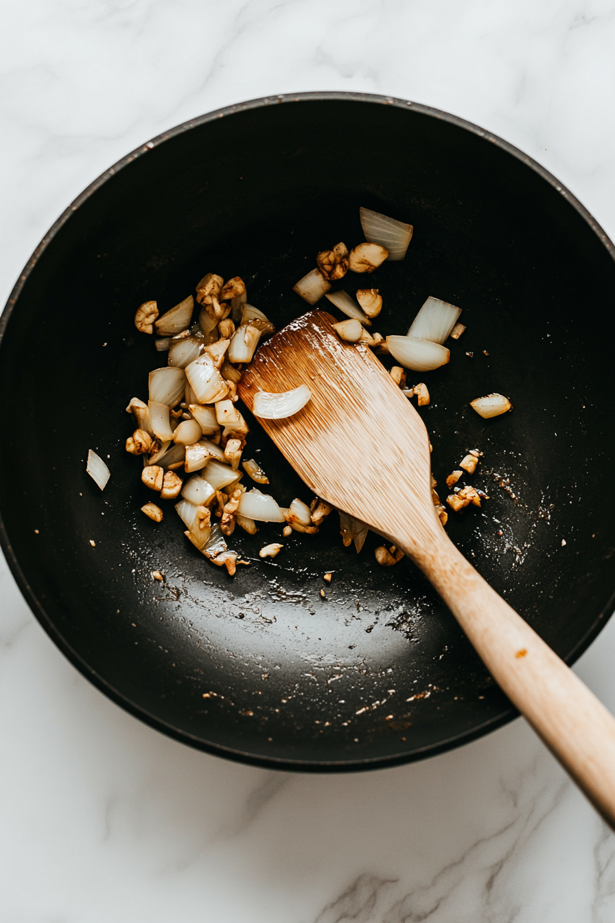 - Sauté Aromatics: Add 1 tbsp oil, sauté chopped garlic and onions until fragrant.
