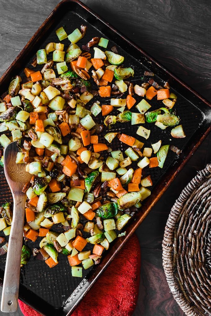 - Remember to toss the vegetables halfway through the roasting process. The edges of the baking sheet tend to cook faster than the center. Tossing helps distribute heat evenly and prevents excessive browning on the bottom side.