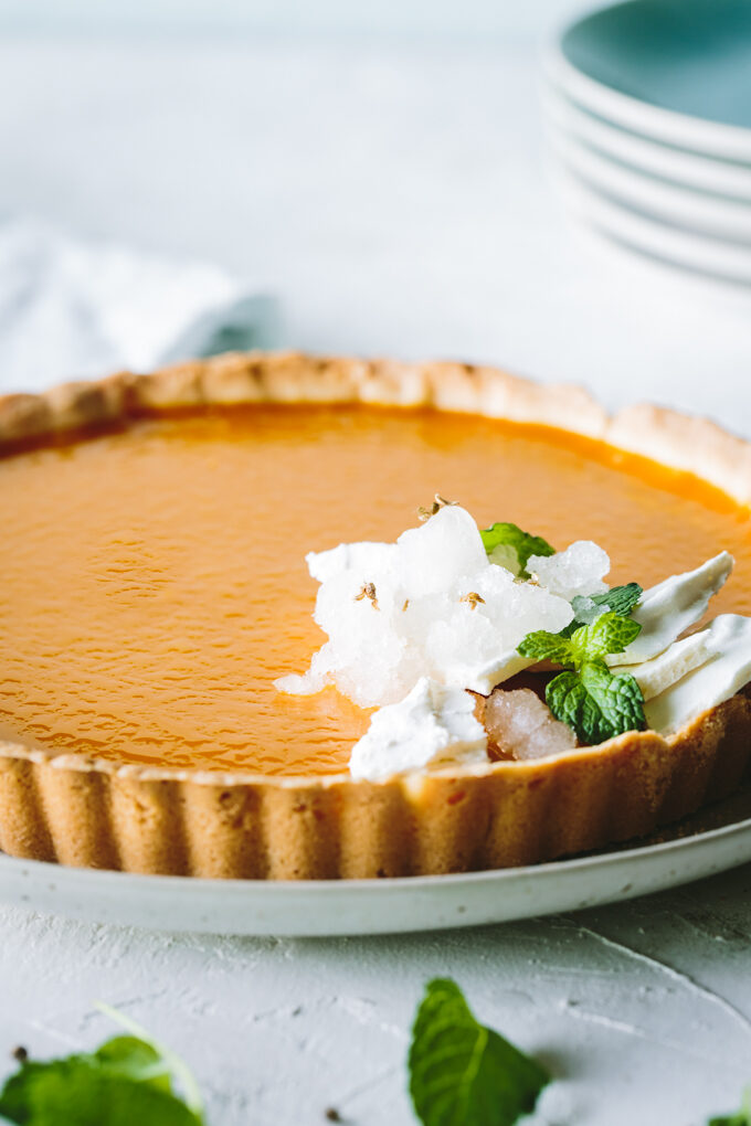 Mango tart topped with meringue and lime granita is my go-to dessert when I want to impress without breaking a sweat. The sweet, juicy mango filling meets the lightest, fluffiest meringue, and the tangy, refreshing lime granita adds the perfect kick.