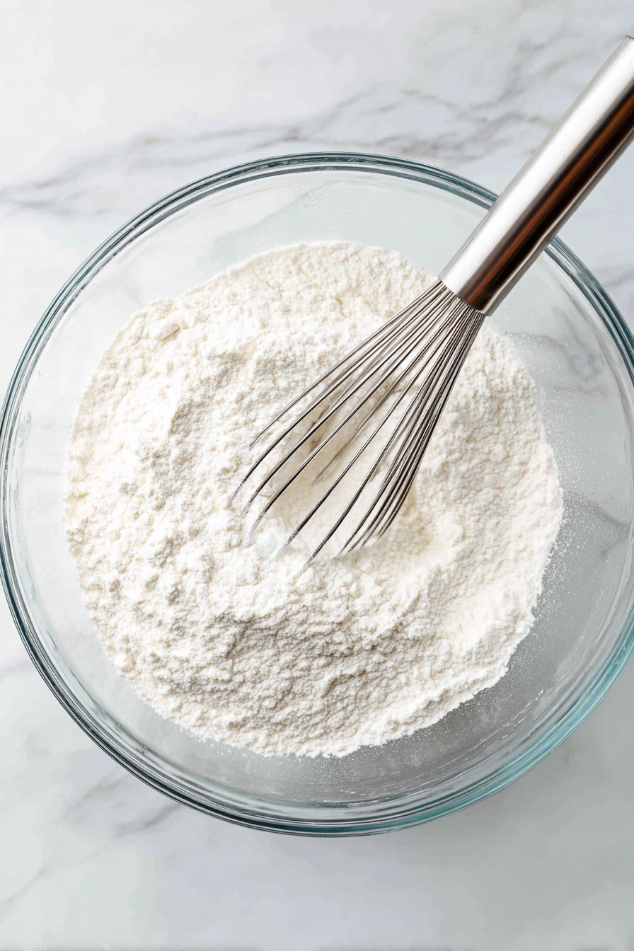 - In a separate bowl, mix flours, baking soda, and baking powder.
