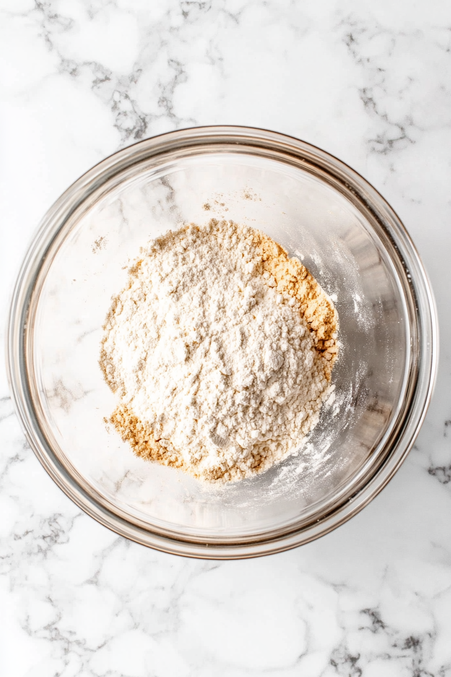 - Mix self-raising flour with black pepper, cayenne, paprika, salt, and garlic powder in a separate bowl.
