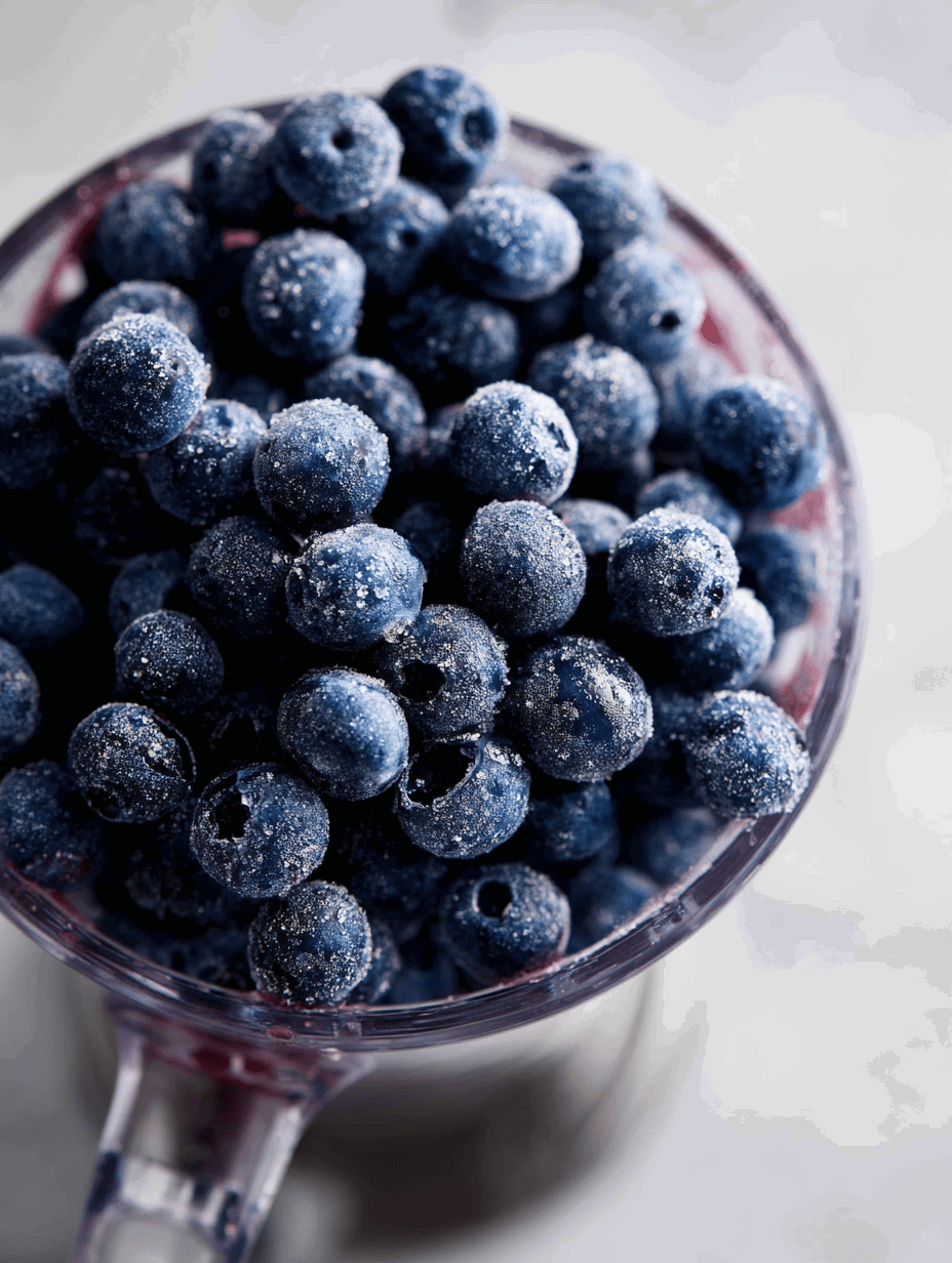 - Place the frozen blueberries into your high-speed blender. The berries should be solid and icy, ready to be crushed.