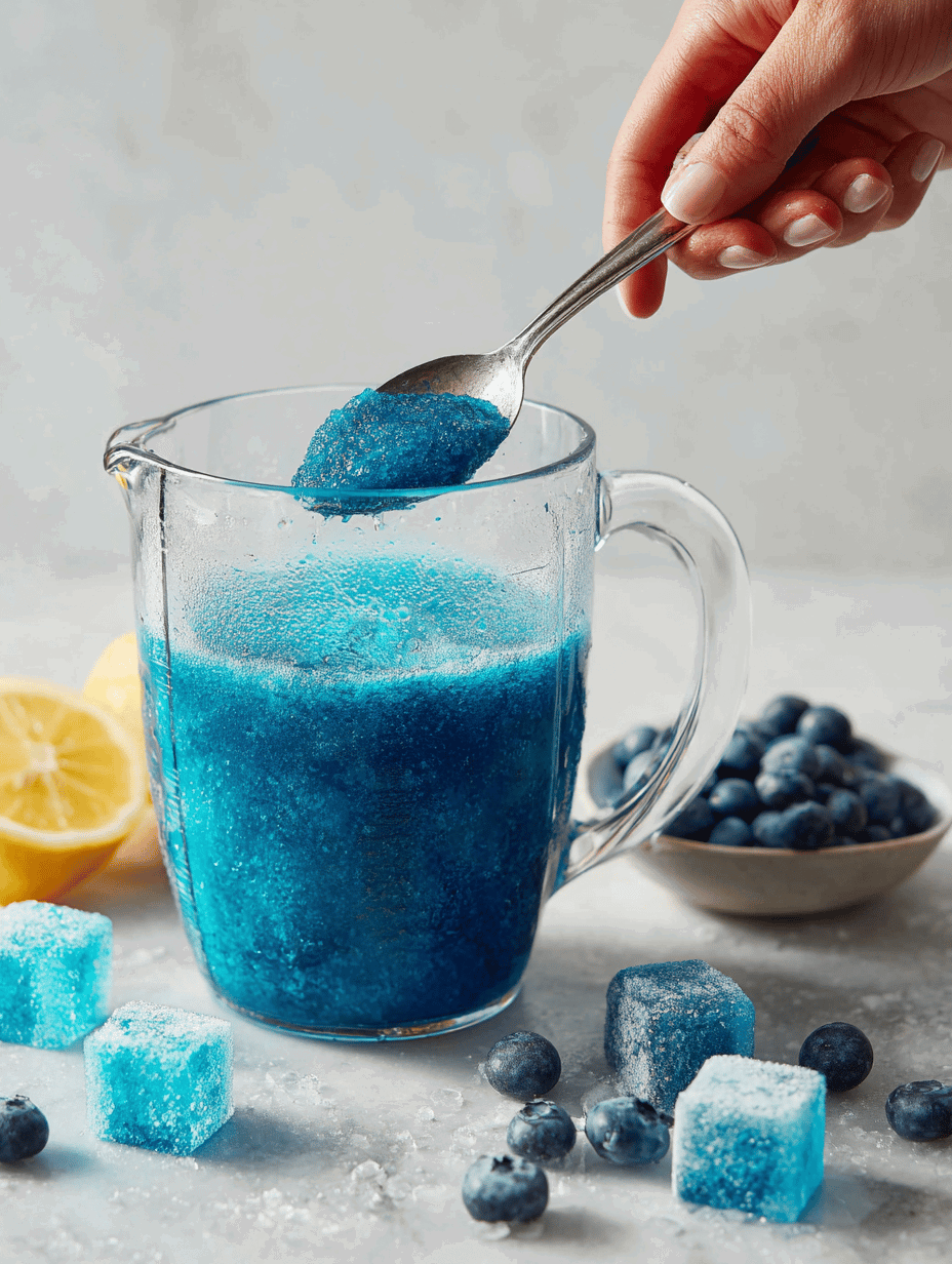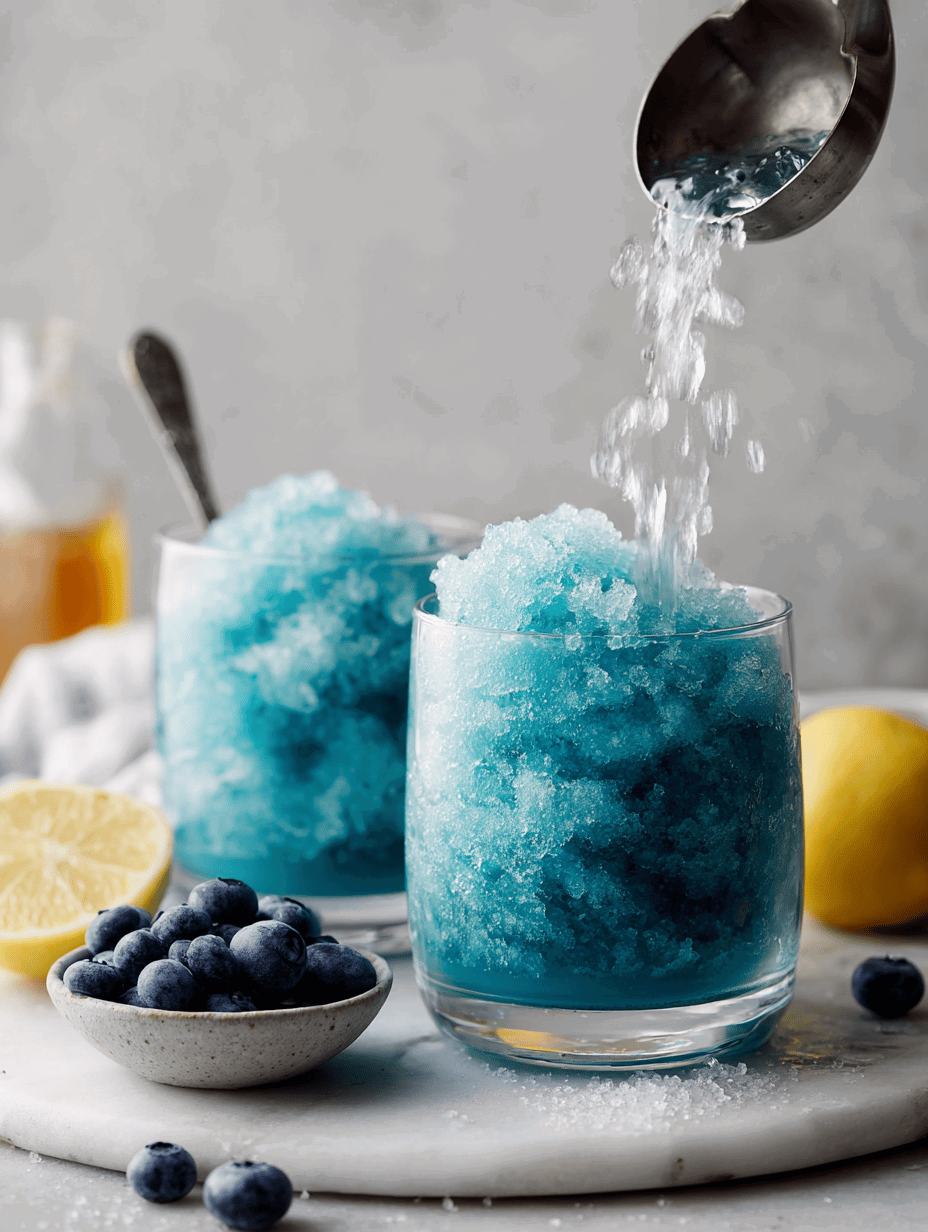 - Pour the bright blue slushie into glasses. Garnish with a few fresh berries or a lemon wedge for a colorful touch.