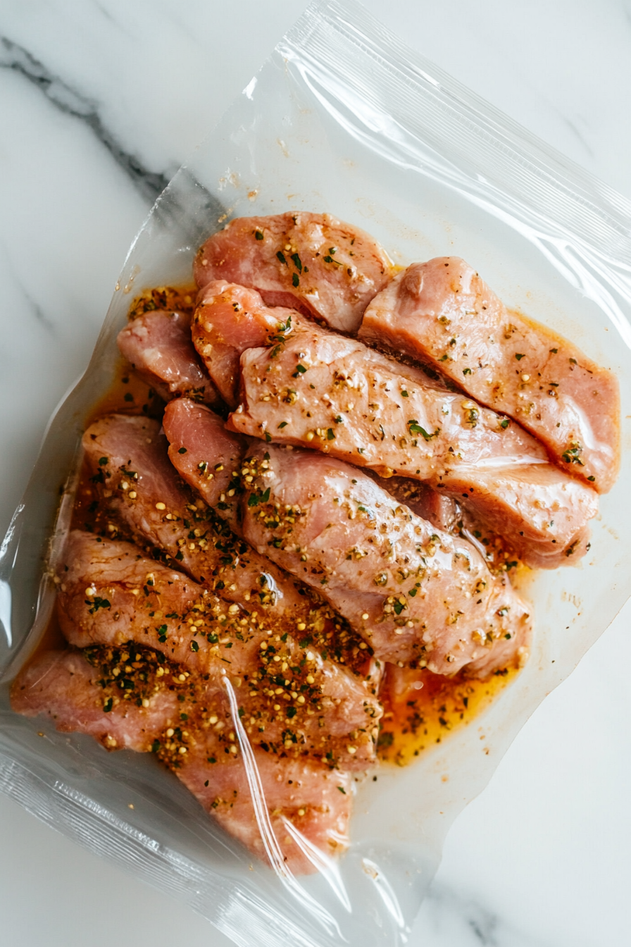 Marinating Pork Tenderloin Strips in Hoisin Sauce