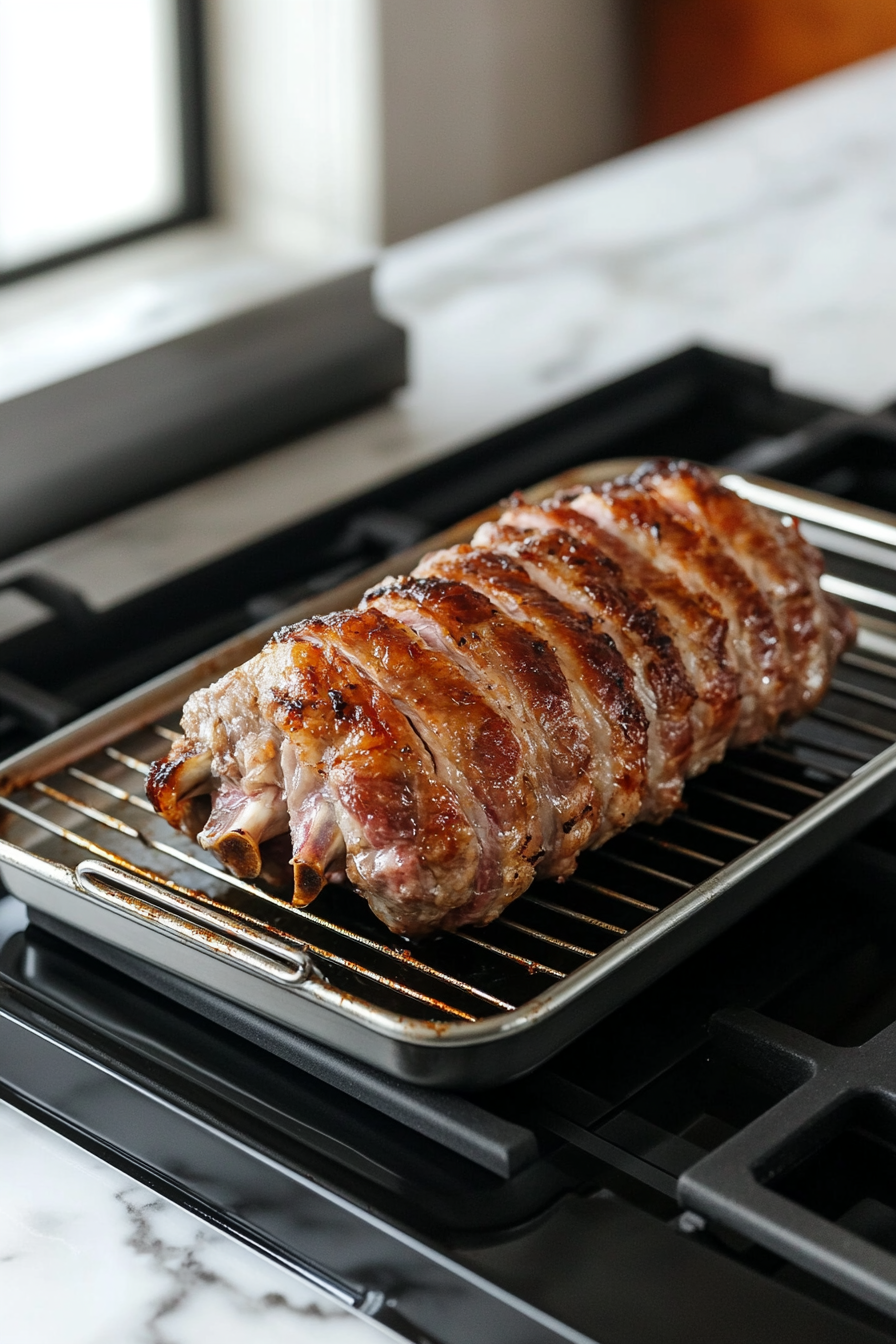 Setting Up Roasting Rack and Tray for Hoisin Soy Sauce Pork