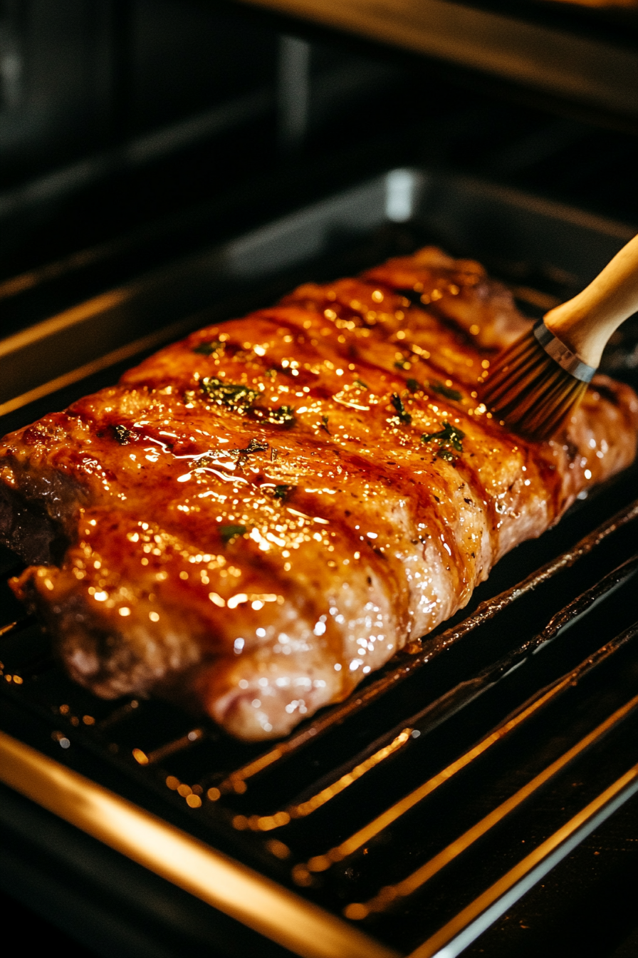 • Roast pork for 30 minutes, basting with the glaze every 10 minutes.
