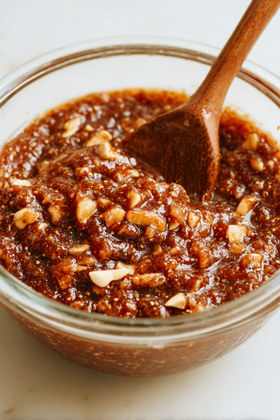 The apples are the heart of this recipe, bringing freshness and natural sweetness. Walnuts add a slightly earthy crunch, while almonds keep the texture a bit firmer and milder. Cinnamon gives warmth and that instantly recognizable charoset flavor.
