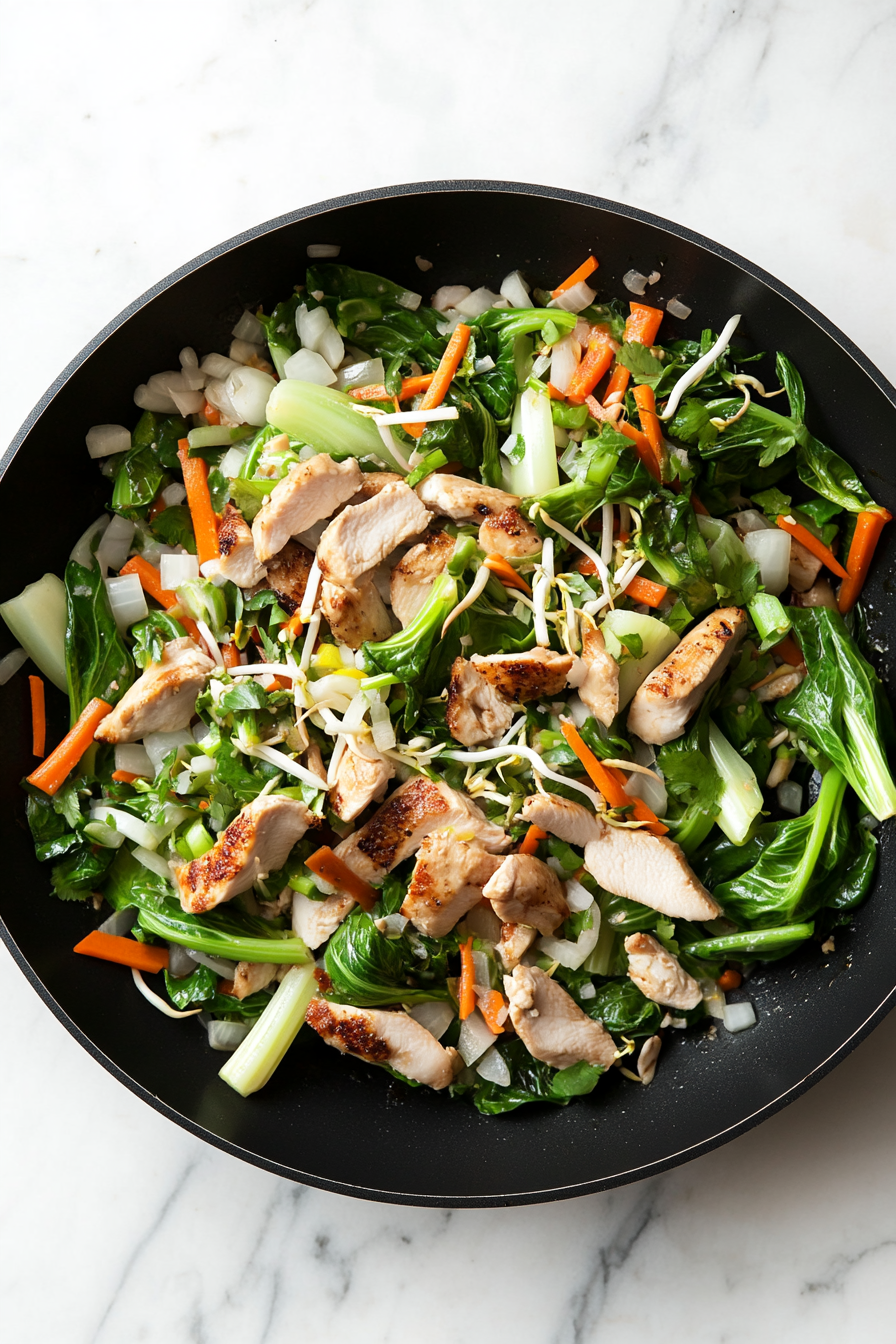• Let the skillet sit still occasionally: Don’t stir constantly — allowing veggies to char just a bit adds a smoky, wok-like depth that transforms the flavor.