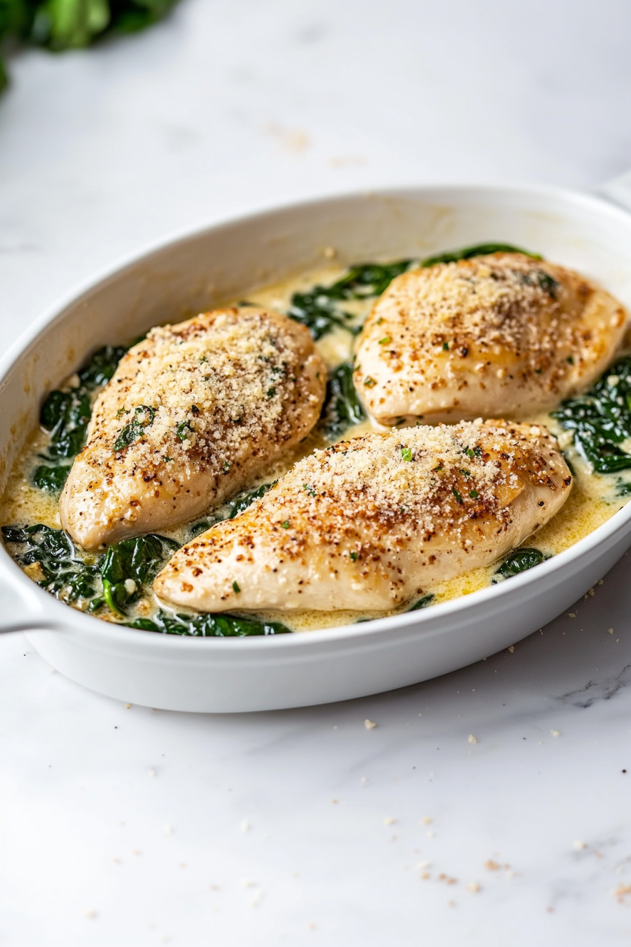 One challenge with creamy chicken recipes is getting the balance just right—too thick and it overwhelms, too thin and it lacks flavor. This recipe nails it by blending heavy cream with white wine and chicken broth, creating a silky sauce that’s light enough to let the spinach and parmesan shine through.