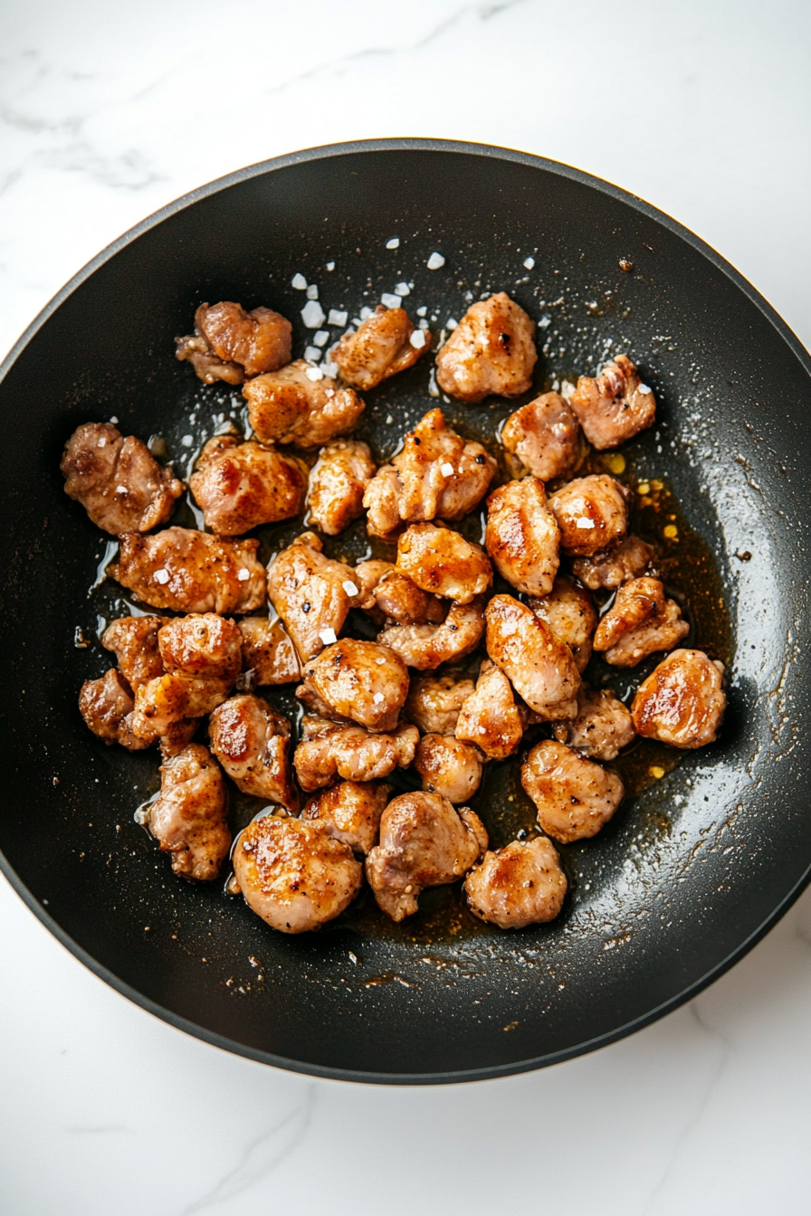 - Add the chicken gizzards to the pan, seasoning with salt and pepper.